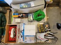 Scanslip 200, Mastercraft angle grinder, faucet, worm gear speed reducer, bike basket, space heater, fiberglass repair kit, suction cup dent puller, dual satellite quad output switchable, twin-size blow-up bed