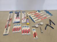 Parts cabinets, drill bit kits, qty of hand tools, hole saw bits, kneeling pads, rivet guns, heat gun, hardware, Mastercraft multi-crafter tool kit, ratchets, magnifying attachment