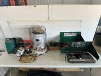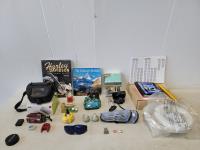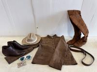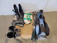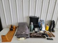 Knives, rope, rubber boots, fishing rod, lantern, Magellan GPS