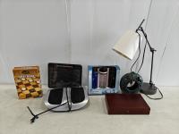 Christmas tree stand, TV wall mount, Toastess indoor deep fryer, Sirius Starmate
