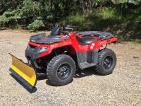 1000 cc fuel injected engine, automatic transmission, Hi/Lo range, reverse, 2 passenger seating with dump bucket, front winch with snow plough attachment, receiver and two 28x12x14 and two 28x10x14 tires.
