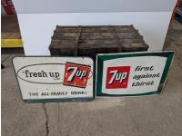 1425 Antique Chest with Contents and (2) Antique 7-Up Signs