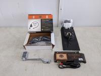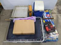 Cooler, popcorn popper, cot, billiard items, FM transmitter