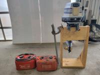 1558 Evinrude 20 HP Outboard Motor, (2) Boat Fuel Tanks and Boat Tow Bar