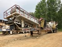(recent jaw re-build) 5 ft X 16 ft 2 deck incline reject screen, feeder with tipping grizzly, 480-volt electric drive, UFD drive belt feeder, TRI/A chassis, 11R22.5 tires