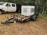 64 inch wide deck, wood deck, stand up ramps, caged 1000 liter tank sells with trailer, 2990 lb axles, 205/75D15 tires
