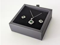 108 Smartlife Platinum Plated Emerald Halo Necklace & Stud Earrings C4 (Unused)