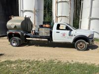 rear deck, 5TH wheel hitch, rear trailer tow package, 2 inch Roper hydraulic drive pump with 200 Liters per minute pumping capacity, hose on real, tool box’s deck can handle 4 totes or 10 drums at a time