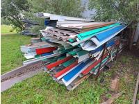 (2) 10 ft green metal roofing flashing, (10) 10 ft white metal starter box flashing, (9) 10 ft grey metal soffit flashing, (327.75 linear feet) brown metal roofing