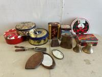 1469 Qty of Tins, Antique, Bells, Mirrors and Hair Crimper