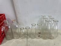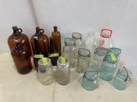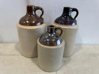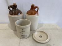 1471 (2) Clay Jugs, (1) 1/2Gal Crock, Size 3-4 Butter Churn Lid