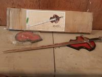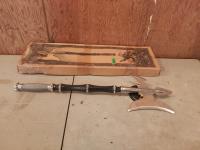 ice tongs, hay hook, fence stretcher, bow saw and hay saw