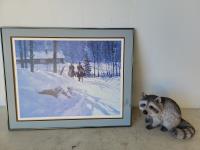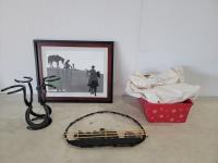 1279 18 Inch Sculpture and (2) Wool Blankets