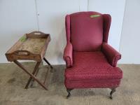 1252 Red Wingback Chair and Wooden Tray with Folding Stand