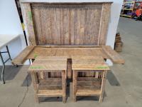 (2) end tables 18-1/8 inch w x 14-1/8 inch d x 23-1/4 inch h, chest 47-5/8 inch w x 20-3/8 inch d x 20 inch h, queen size headboard and footboard