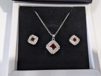 1533 Smartlife Platinum Plated Double Halo Ruby 2-Piece Set (Unused)