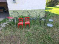 5713 (4) wrought iron chairs, (2) tables & kids chairs
