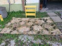 shelf 27.5" x 10.5" x 31" , rug 8' x 5'