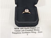 5017 Smartlife 18K Gold Plated 2.0 Carat Lab-Created White Sapphire Solitaire Ring - Size 7 (Unused)
