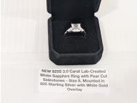 5018 Smartlife 925S 3.0 Carat Lab-Created White Sapphire Ring with Pear Cut Sidestones - Size 8 (Unused)