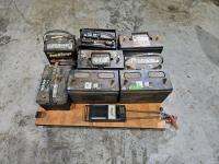 38 (8) Used Batteries, Battery Tester, Platform On Castor Wheels