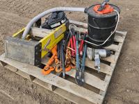 1138 Qty of Bailer Twine, Casters, Various Tools in Box, and Straps