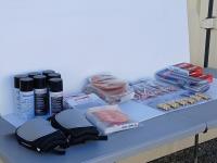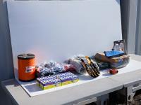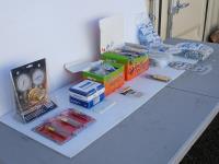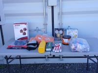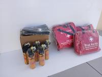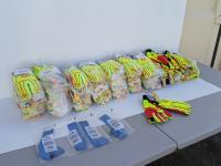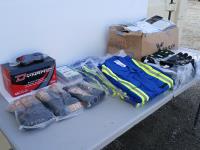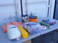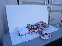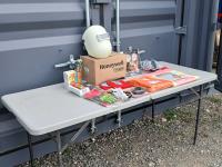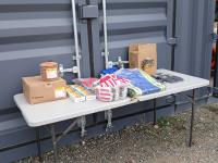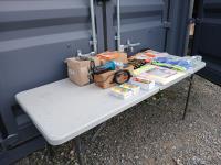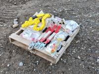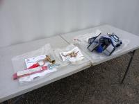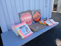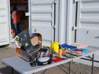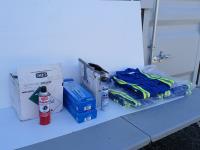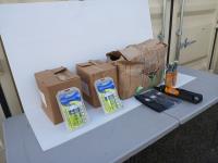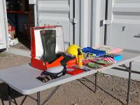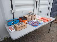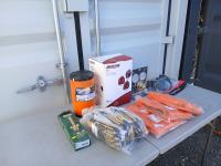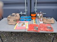 (1) Mallet Axe, (2) Snow Shovels (one plastic, and one Metal), (1) Broad Mouth Metal Shovel, (3) Spade Shovels, (2) Hoes, (1) Metal Edger/Scrappers, (1) Fire place/Wood stove Shovel, (3) Metal Rakes, (2) Lawn Rakes, (1) Salt/Seed Spreader