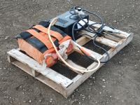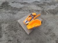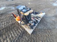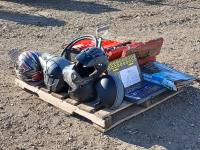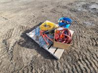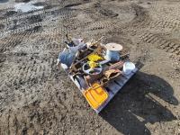 (1) Torch Cart, (1) Stihl Weed Eater, (1) Harness, (1) Level, (2) Grease Guns, (1) Car Wash Brush, (1) Load Sling, (1) Base Mount Vice, (1) Orange Hard Hat, (2 Wheel Discs, (2) Spools Line