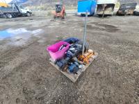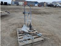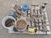 (2) Fence Stretchers, (1) Wheel Tape Measure, (1) Post Pounder, (2)-Partial Rolls Wire, Various Hand Tools, Screws (3 inch), (1) Farm Jack, (3) wire line stretchers, (2) Containers Wire Fencing Nails, (1) Container 1.5 inch staples, (1) Carpenter's Belt. (2) measuring wheels.