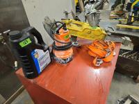(1) Powerfist 5L hydraulic oil, submersible pump, Simplex jack, tow straps