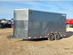 ball hitch, side door, fold down door, electric brakes, spring suspension, 88 inch W x 81 inch T rear door, 5210 lb axles, 225/75R15 tires