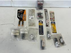 Files, combination ratching wrenches, drill bits, Adapt-a-Drive chuck, 7 ton 2 & 3 jaw gear puller, impact sockets