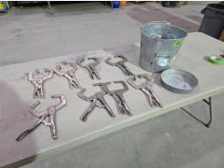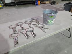 5873 (8) Welding Vise Grip Style Clamps, (1) Galvanized Bucket