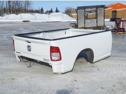 110 inch wide deck, 5 ft beavertail, 5 ft steel fold down ramps, 6 ft x 11 ft step deck, wooden deck w/ rubber mating, 20,000 lb axles, air brakes, rub rails, stake pockets, hydraulic front mount winch, spring ride suspension, 235/80R16 duals