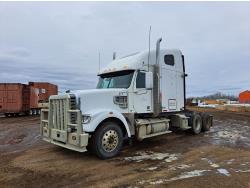 Cummins N14 14.9 L 6 cylinder diesel engine, engine brake, Eaton FULLER 18 speed manual transmission, mid rise sleeper, A/C, cruise control, leather interior, air ride driver seat, 2-way radio, stereo, aluminum moose bumper, aluminum headache rack, beacons, chain holders, air ride suspension, 13,200 lb front axle, 46,000 lb rear axles, full lockers, 228 inch WB, select plus 525 HP, 1850 torque , 11R24.5 tires