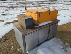 20 inch X 20 inch X 19 inch high, Tool box two 7 inch X 7 inch X 72 inch compartments