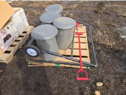 861 (4) Poly Stools, (1) Ice Scraper, (1) Metal Frame On Wheels