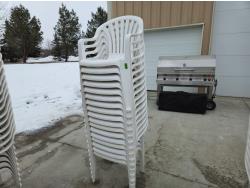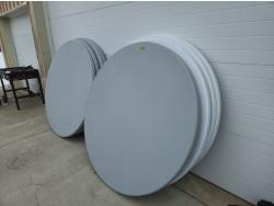 144 (8) 5 Ft Round Poly Folding Tables & (76) Stacking Chairs On Rolling Racks