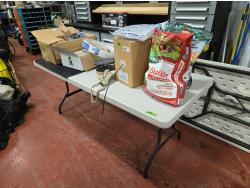 (2) Part bags of grass seed, (700±) ft of Cat 5 communication cable, Hand broad caster, (6) sq ft of 4 inch tiles, roll of 1/2 inch Pex pipe, Qty of (unused) Twister hole saw plug removal tools