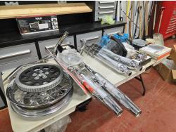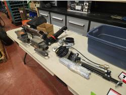 66 inch wide, tote of small ratchet straps, motorcycle wheel lock and all related hardware