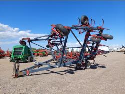 12 inch spacing, 16 inch sweeps, Flexi-Coil 4 bar 13 inch spring tooth harrows, walking axles on main frame, walking axles on wings, 11L-15FI main frame tires, 9.5L15 wing tires