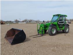 23 ft reach, Enclosed cab, A/C, air ride seat, hydro transmission, scale, electric circulating block heater, 3 way steering, 156 hp Deutz TCD4.1 L4 engine, hydraulic quick connect, 540/1000 PTO,1 front auxiliary hydraulic, 2 rear auxiliary hydraulics, 48 inch forks, includes 106 inch bucket, 17.5LR24 tires,