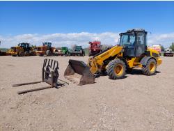 Enclosed cab, A/C, control pattern change, pilot controls, diesel engine, electric circulating block heater, 2 speed transmission, hydraulic Q/C coupler, 1 auxiliary hydraulics, 12X16.5 tires