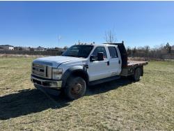 6.7 L, 6 cylinder, automatic transmission, P/W, P/L, A/C, heated mirrors, 112 inch long deck, 93 in wide deck, steel headache rack, aftermarket trailer brake, CM Truck Bed flatdeck, 235/80R17 tires