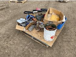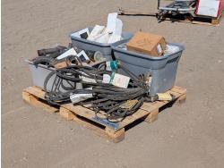 (2) trailer straps, (2) marker light panels, steel braided cable, fuel transfer nozzle, Qty of miscellaneous belts, wire and hose.
