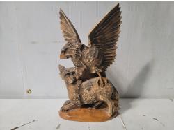 1471 Vintage Hand-Carved Wooden Eagle Sculpture