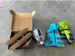 1071 Youth Large Helmet, (2) Stearns Youth Life Jackets and Warn 2000 lb ATV Winch