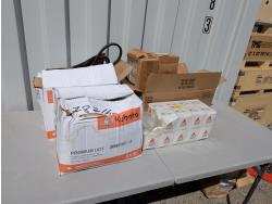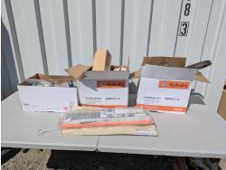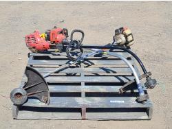 Mower bags, universal seats, steel hydraulic lines, Kubota working light and other assorted items