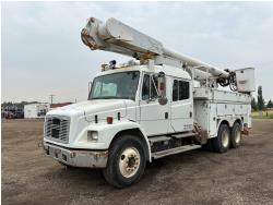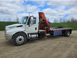 MaxForce engine, automatic transmission, A/C, cruise control, radio, P/W, P/L, P/M, tire chains, aluminum tool boxes, 10 ft deck, chain holders, Amco Veba 907N knuckle rear mount crane, outriggers, diff lock, 226 inch WB, all aluminum wheels, 11R22.5 tires
