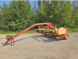6.6 Liter engine, hydro drive, cab, AC, heat, radio, buddy seat, 23.1X26 drive tires, Agco 1950 Razor Bar 16 ft disc mower conditioner, steel on steel rolls, skid shoes